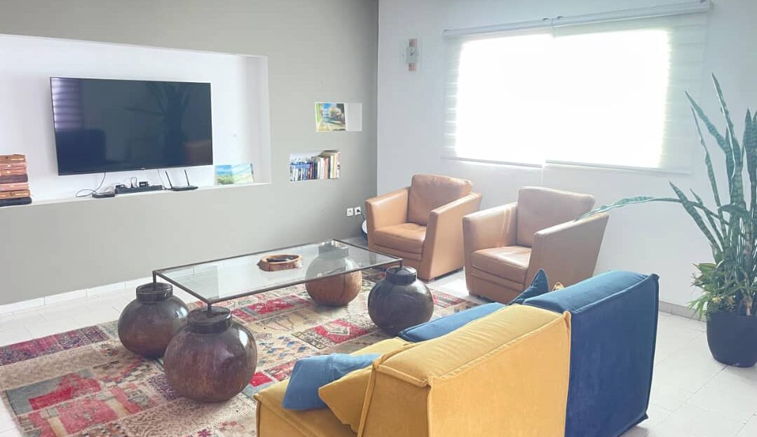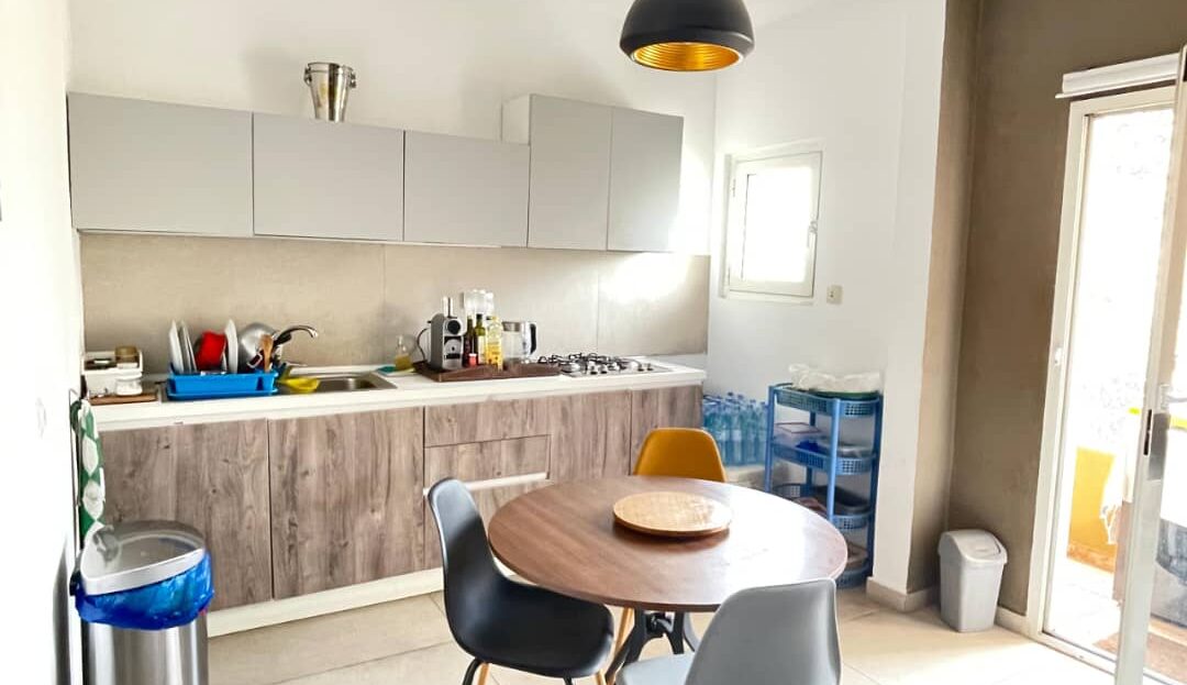 – Cuisine : réfrigérateur/congélateur, four + plaques à induction, four à micro-ondes, vaisselle complète.